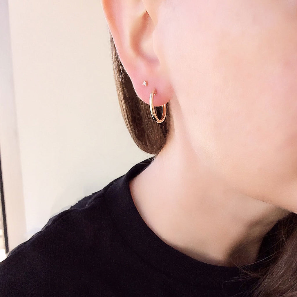 An ideal size for most ears, these high polish huggies are a terrific foundation earring if you have multiple holes - create a tiered ear by pairing with our petite diamond huggies in your second holes, and keep adding with our petite diamond studs from our Souli Collection - the sky's the limit!
