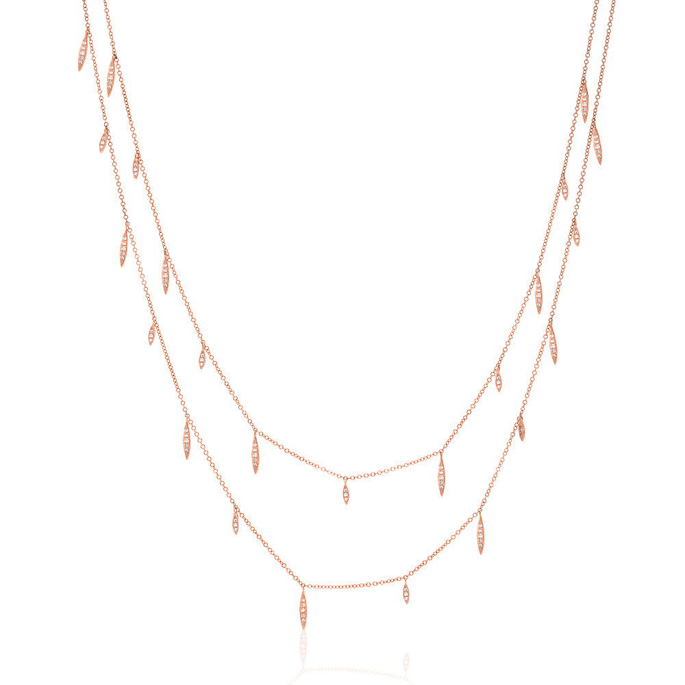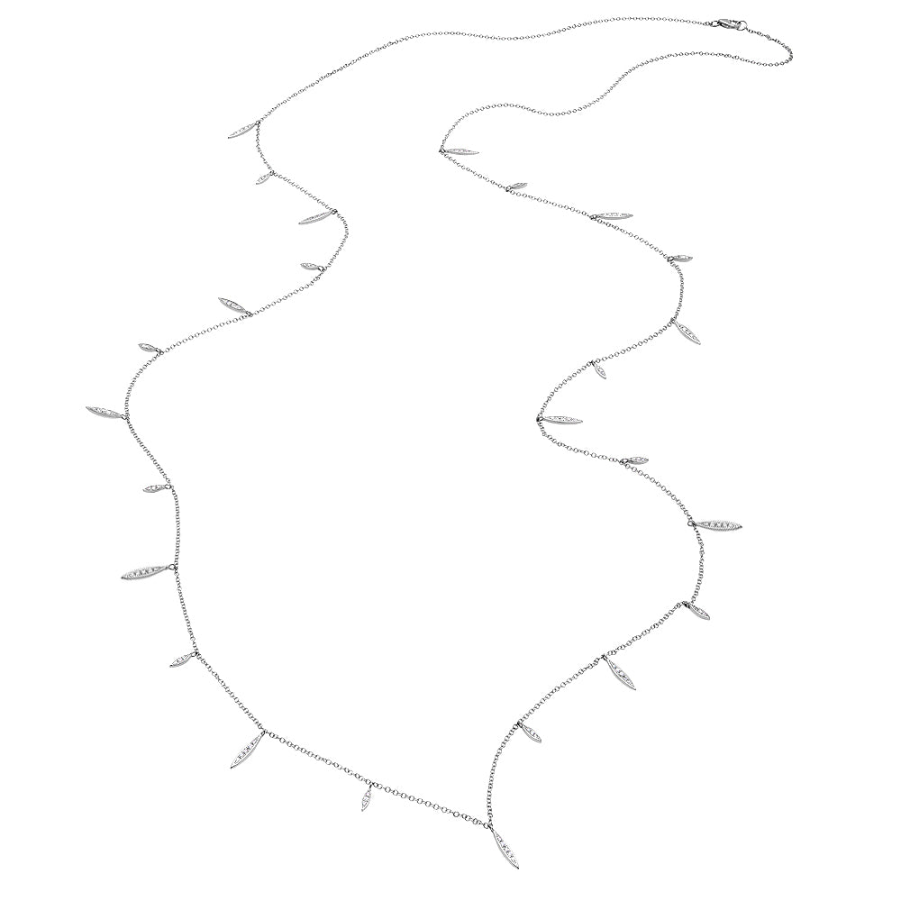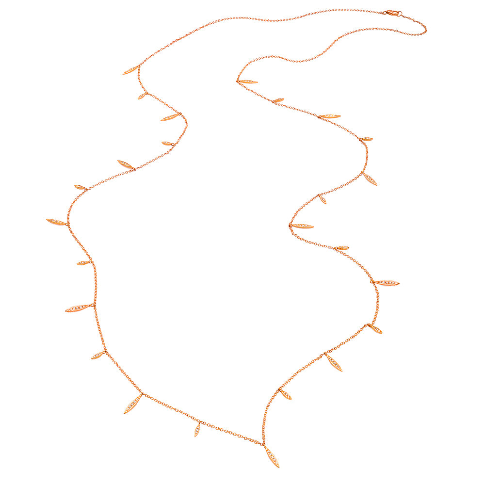 Fresh and wispy, this 14k gold necklace features diamond-studded willow leaves that sway beautifully with your every movement. 36" in length, this willow necklace can be worn as a long chain, or doubled over for a layered effect. The long length and versatile styling options of this graceful necklace make it the perfect accent to any look, from a casual t-shirt to your favorite little black dress.