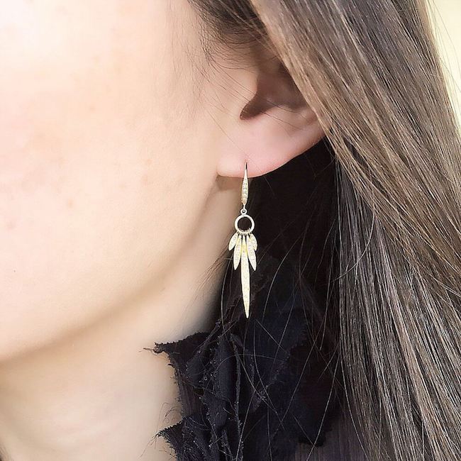 These 14k gold earrings are studded with diamonds, and were designed with movement in mind. Keep the dreams flowing, and we'll help you hold on to the good ones.