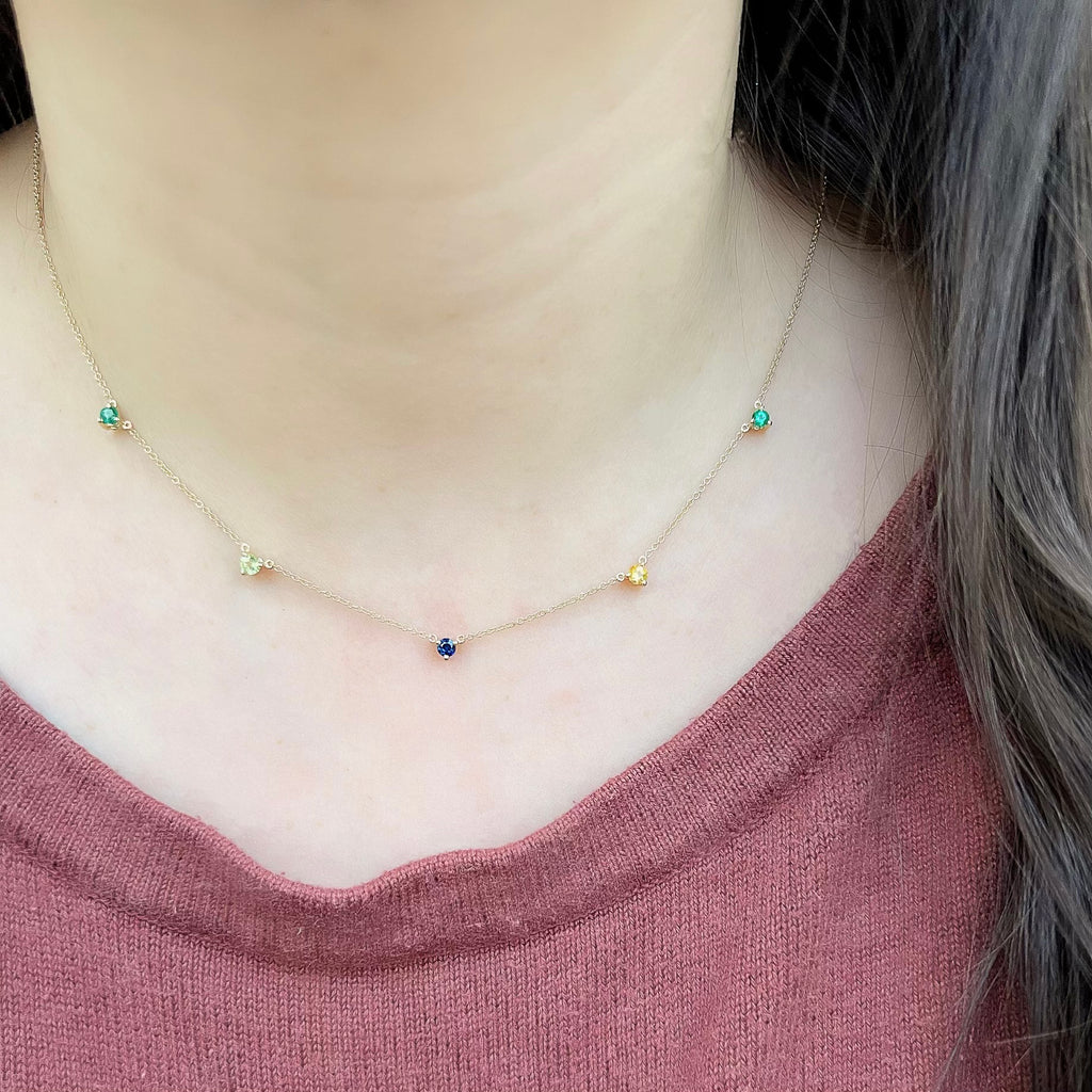 This beautifully simple everyday necklace is a beautiful way to celebrate your family. Choose 5 birthstones - and their order - to create a truly unique piece that you can wear every day. Celebrate parents, children, grandbabies, pets, niblings, friends - whoever your loved ones are.