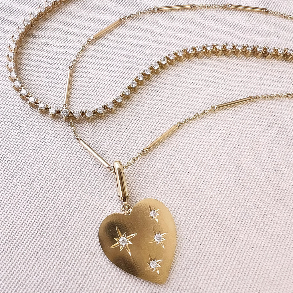 At Liven, we’re pleased to offer an array of beautiful handmade, conflict-free jewelry that you can call your own, such as this stunning gold and diamond necklace. If you have any questions about our diamond tennis necklace or any pieces from our collection, we invite you to contact our friendly staff at 213.293.6088, or to reach us anytime via email at info@livenco.com.