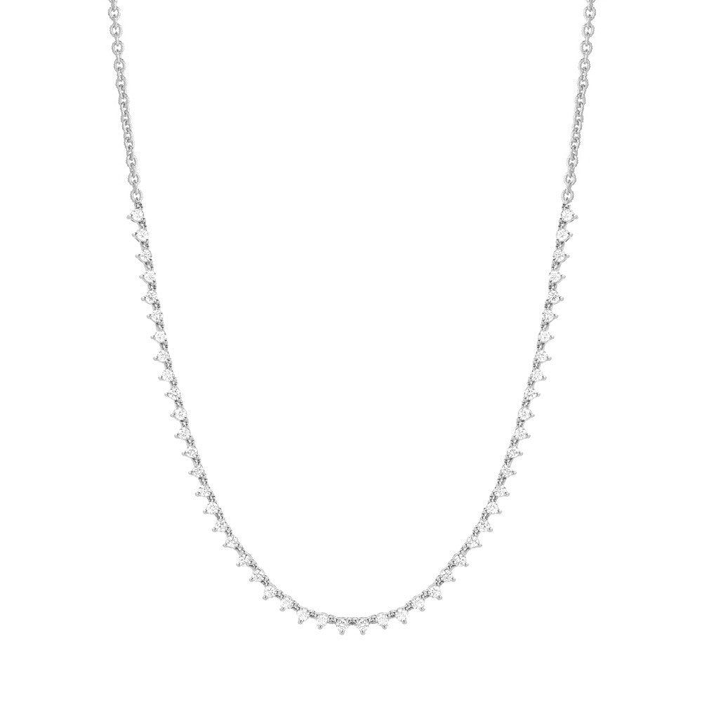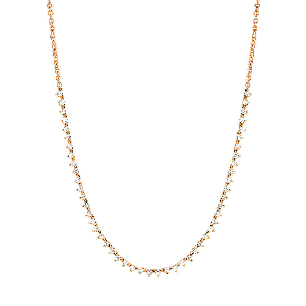 Tennis necklaces are a classic accessory. This gold and diamond necklace features: