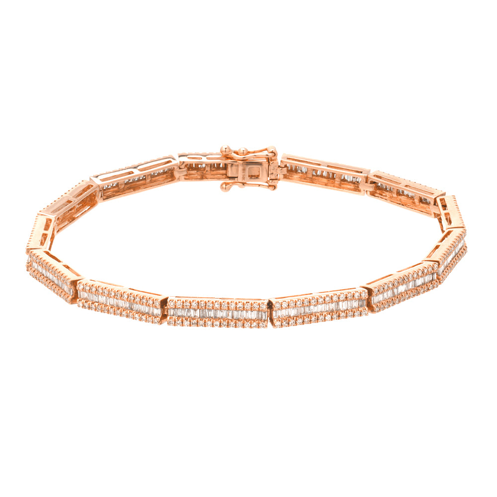 Part of our Heirloom Collection, this beautiful tennis bracelet features bars of white and baguette diamonds all the way around. Handmade from solid 14k gold and all-natural, conflict free diamonds.