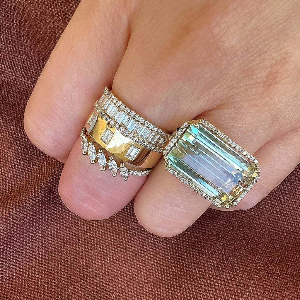High Polish Wide Band With Triple Baguette Diamonds