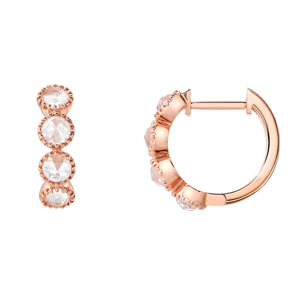 These huggies are the perfect diameter for everyday wear. The feature hand-selected 3mm diameter natural rainbow moonstones, set into bezels on our classic style huggie. These huggies are comfortable, classic and a cool way to add a beautiful pop of iridescence to your look. The subtle shimmer contrasts beautifully with the milgrain texture of the bezel settings, and the glow of high polish gold. Each pair is made by hand from ethically-sourced materials, produced with love just for you. This simple signature setting is also available as a ring.