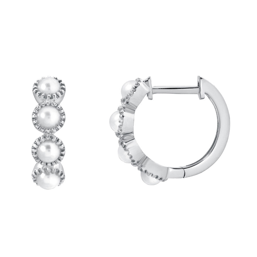 These huggies are the perfect diameter for everyday wear. The feature hand-selected 3mm diameter pearls, set into bezels on our classic style huggie. These huggies are comfortable, classic and a cool way to wear some beautiful pearls. The shimmering iridescence of these smooth, elegant pearls contrasts beautifully with the milgrain texture of the bezel settings, and the glow of high polish gold. Each pair is made by hand from ethically-sourced materials, produced with love just for you.