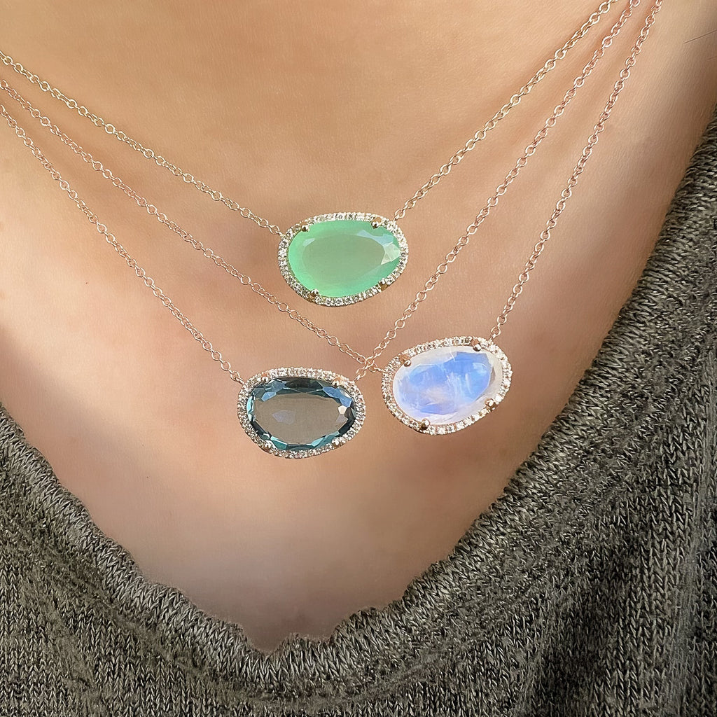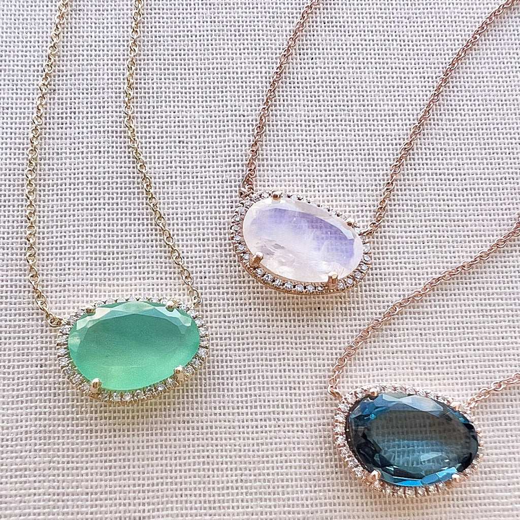 We’re thrilled to present an array of ethically-sourced, handcrafted diamond and gold jewelry. All of our diamonds are conflict free, and we use only the highest quality metals and techniques. This necklace is a stand-out in our collection, and makes the perfect addition to your jewelry collection –– or a gorgeous gift for someone special. For questions about the colored stone necklace, we invite you to contact us at (213) 293-6088, or reach us anytime via email at info@livenco.com.