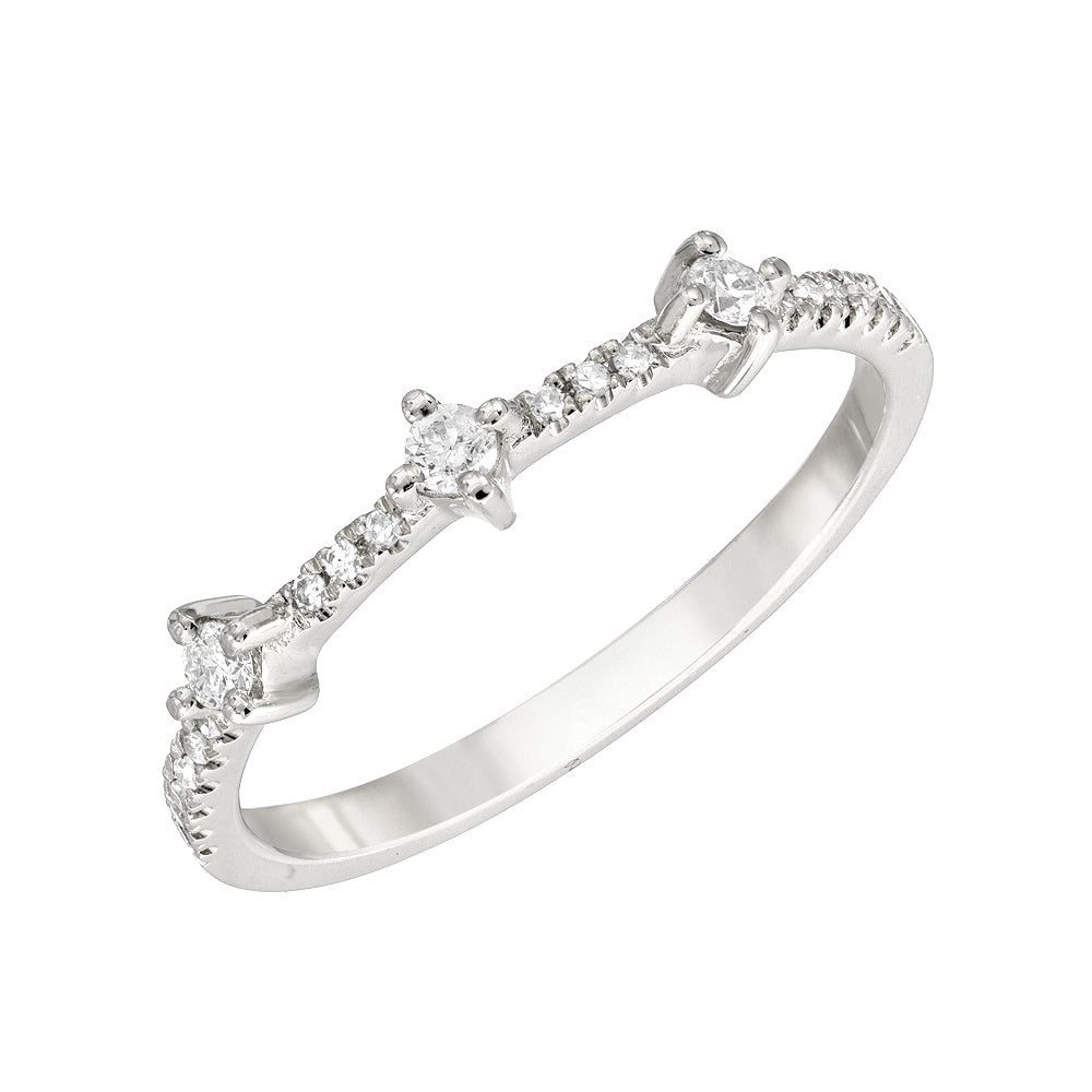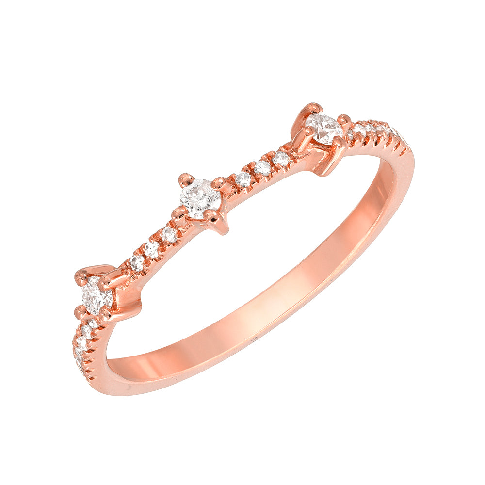 This preciously petite halfway band features three prong-set diamonds on top. This ring, like all Liven rings, is handcrafted in solid 14k gold with natural, conflict-free diamonds throughout. We love this piece to add texture to a stack, or for a pared-down bridal look.