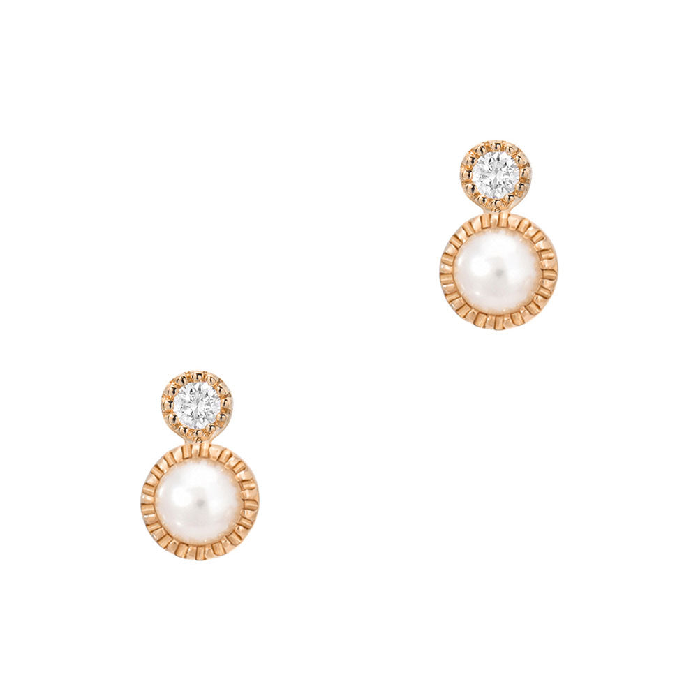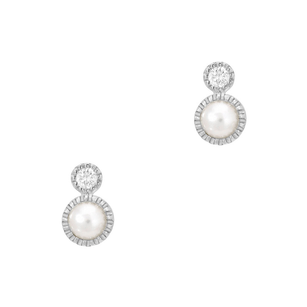 These cool Orbit stud earrings are a fun and modern way to wear pearls. Each 3mm pearl is bezel-set by hand, and orbited by a brilliant cut diamond.