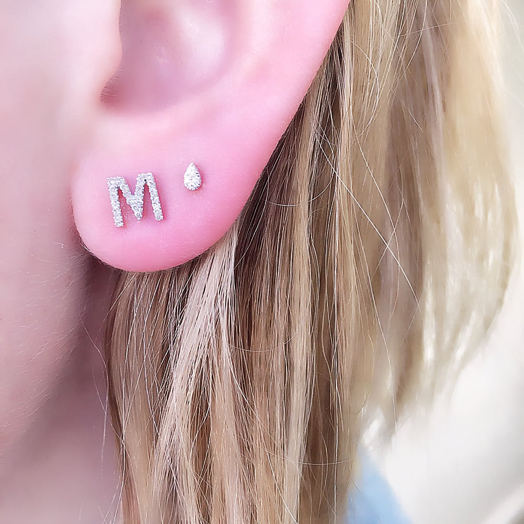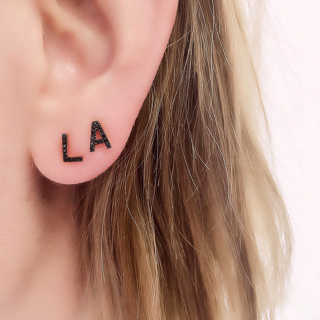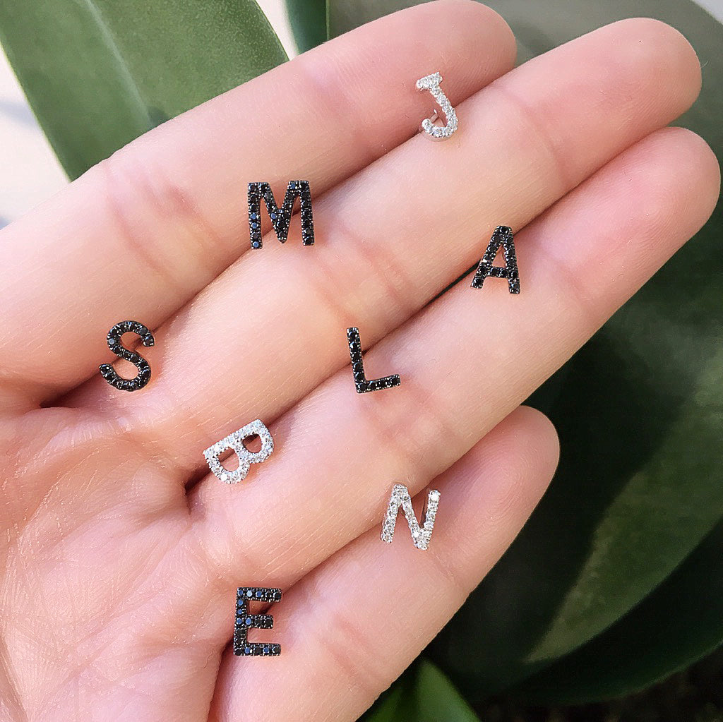 These adorable 14k gold single initial studs are a sweet way to pay tribute to what's important to you - they are available to order in white, yellow and rose gold, as well as black rhodium, with white or black diamonds. If your combination isn't shown, put your preference in the notes at checkout and we'll be in touch!