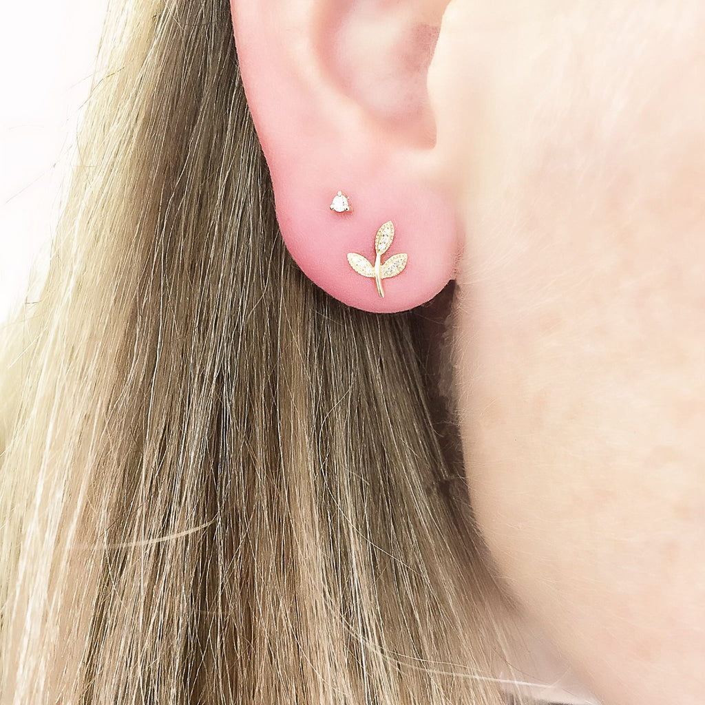This adorable miniature version of our popular leaf post earring is a gorgeous everyday stud. It represents a seedling, growing and changing to stand the test of time. Our connection with the natural world is always a source of strength and comfort, and we distilled our love of nature into this wearable, beautiful post earring style. Handmade in solid 14k gold and all-natural, conflict free diamonds.