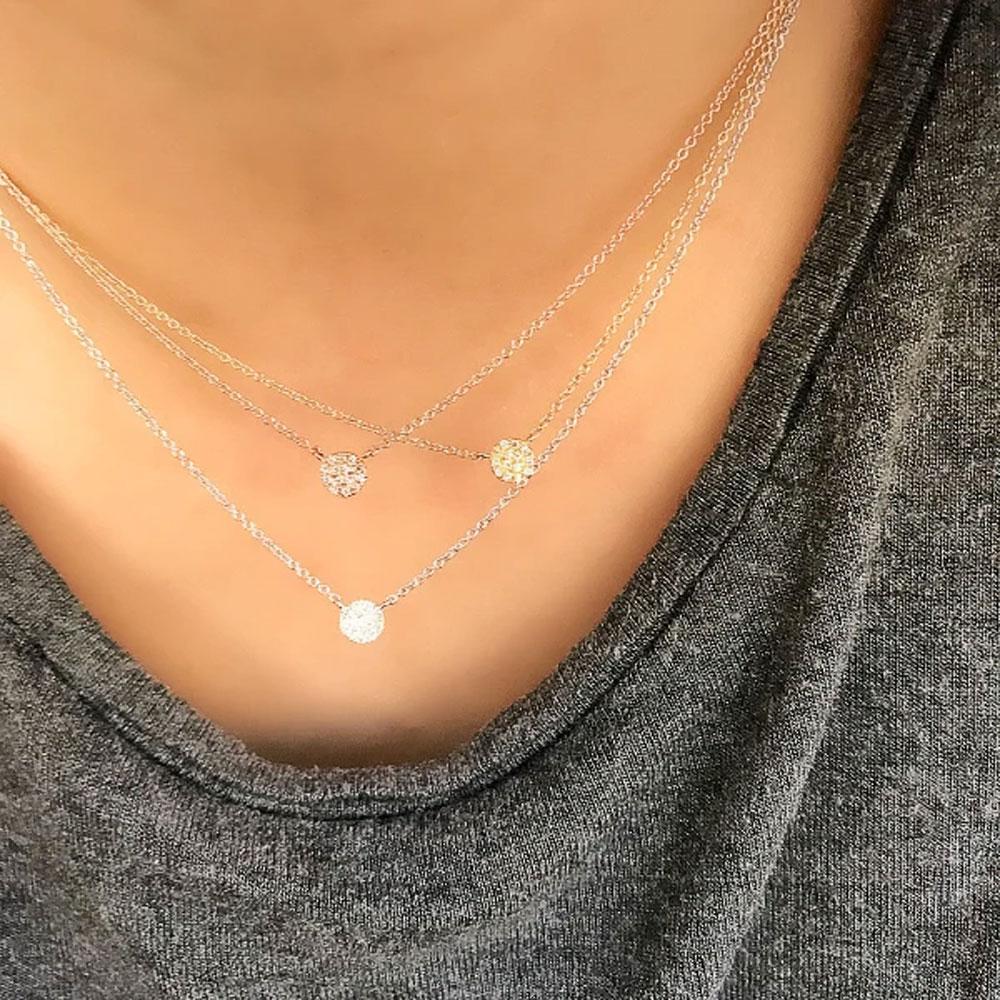 This necklace is a timeless classic - a solid 14k gold disc at 4.5mm diameter, hand-set with pavé diamonds from edge to edge. Here are a few of the top features: