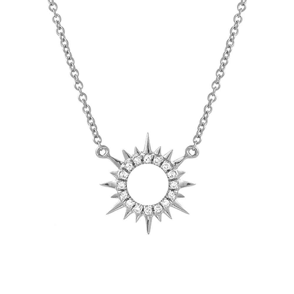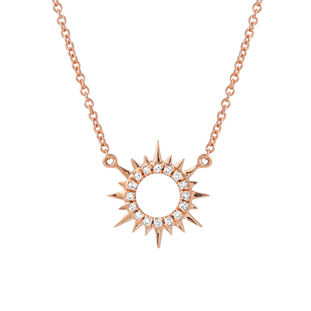 This unique petite sunshine necklace centers on an open circle of diamonds surrounded by high polish rays for a timeless yet distinctly modern appeal. There’s a lot to love about this distinctive diamond sun necklace, including: