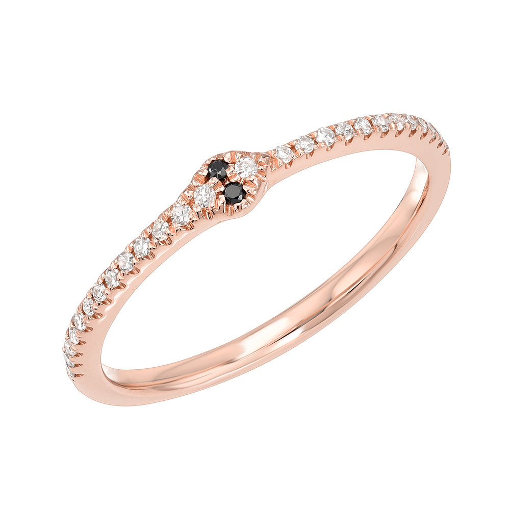 Ouroboros, or a snake eating its own tail, is a powerful symbol of rebirth, self-reliance and renewal. Show your resilience and power with this adorable petite ouroboros motif halfway diamond ring. This beautifully dainty design features 14k gold with white diamonds and black diamond eyes for a subtle style.