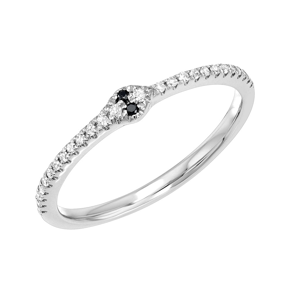 This adorable mini ouroboros ring is set with white and black diamonds, made by hand, and utterly gorgeous. Here are a few of the top features: