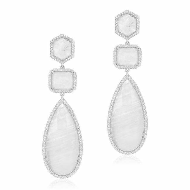 These beautiful solid 14k gold earrings feature rainbow moonstones highlighted with diamonds. Available in a variety of colored stones.