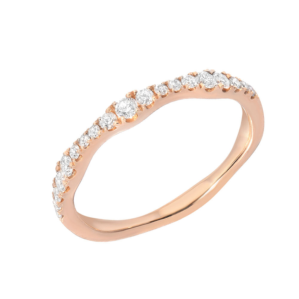 This 14k solid gold band features a line of gently graduated diamonds, cresting and subsiding along the front of this charming gold ring. Each ring in our collection is meticulously handmade using ethically sourced materials, just for you.
