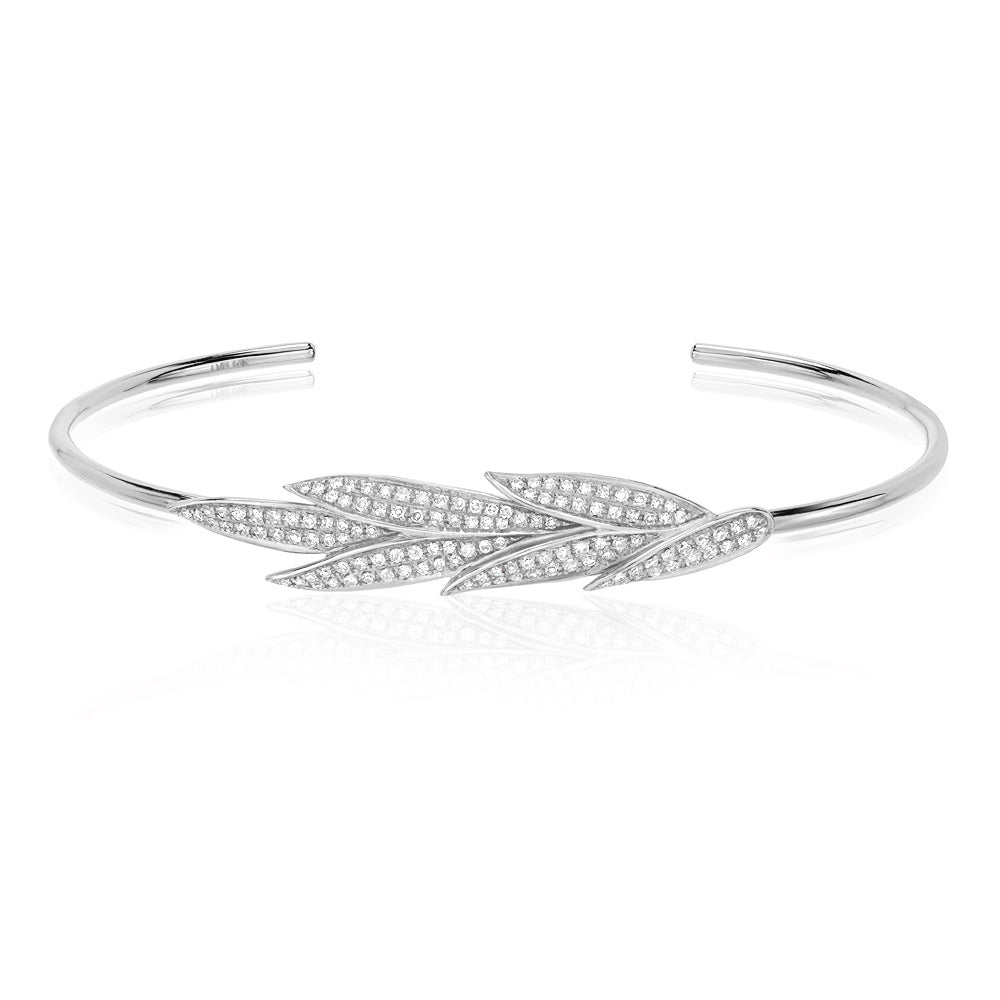 A cuff bangle is an easy way to accessorize, and offers flexibility and comfort. This wheatsheaf bangle is hand-crafted in 14k gold and diamonds. Here are a few of the top features: