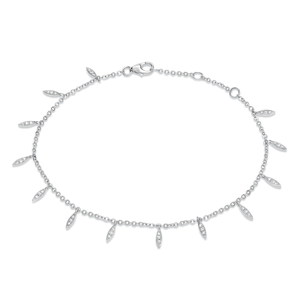 14k gold bracelet with diamonds set on its 13 dangling willow leaves. The willow represents balance, growth and harmony. Assign each leaf on this dainty bracelet a personal meaning, to create a powerful talisman for you and your loved ones.